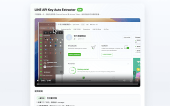 LINE API Key Auto Extractor är ett användbart verktyg för utvecklare som arbetar med LINE Messaging API. Den här Chrome-tillägget erbjuder en helt automatiserad process för att extrahera Channel Secret och Access Token utan att kräva manuell kopiering och klistring. Användare kan enkelt initiera processen med ett enda klick och låta verktyget hantera alla steg, vilket sparar tid och minskar risken för felaktigheter.